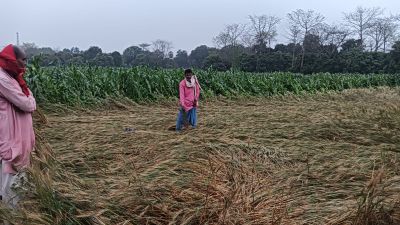 गोरियामा पंचायत के सलेमापुर व टेंगराहा की ये तस्वीरें बर्बादी की गवाही दे रहीं आंधी व ओलावृष्टि से सैकड़ों एकड़ में लगी गेहूं व मक्के की फसल गिरी2